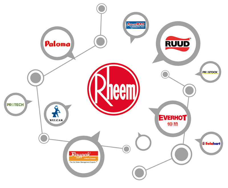 瑞美集团在全球共有10个研发中心、11个热水事业中心、23个创新学习中心,22个生产中心,员工超11000人,旗下已拥有Rheem(瑞美)、Ruud、EVERHOT(恒热)、Raypak、Eemax、Intergas、Solahart、Vulcan等40多个国际知名品牌,产品畅销88个国家,是全球范围内颇具影响力的热水设备制造商。